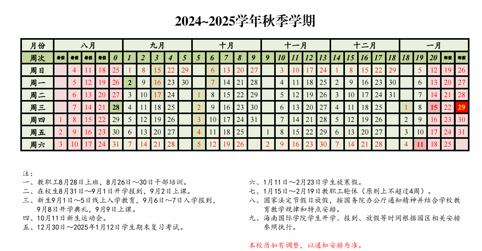 MUC Academic Calendar