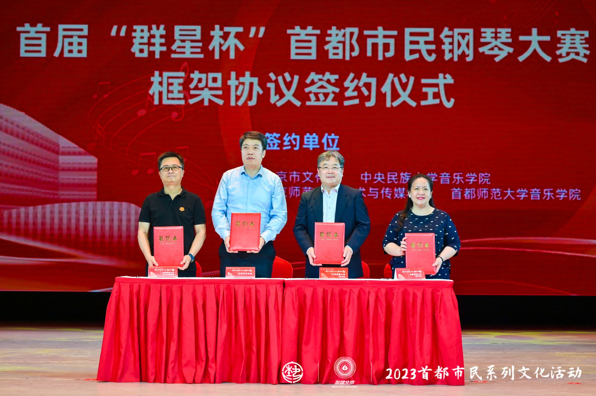 為全面貫徹落實學校“三全育人”工作,助力北京市公共文化事業發展,開幕式上,音樂學院與北京市文化館簽署“群星杯”鋼琴大賽框架協議,根據協議,雙方將在高校人才培養、藝術實踐、志愿服務、就業育人、推進公共文化事業發展、促進北京市文藝事業繁榮發展等方面方面開展深入合作。