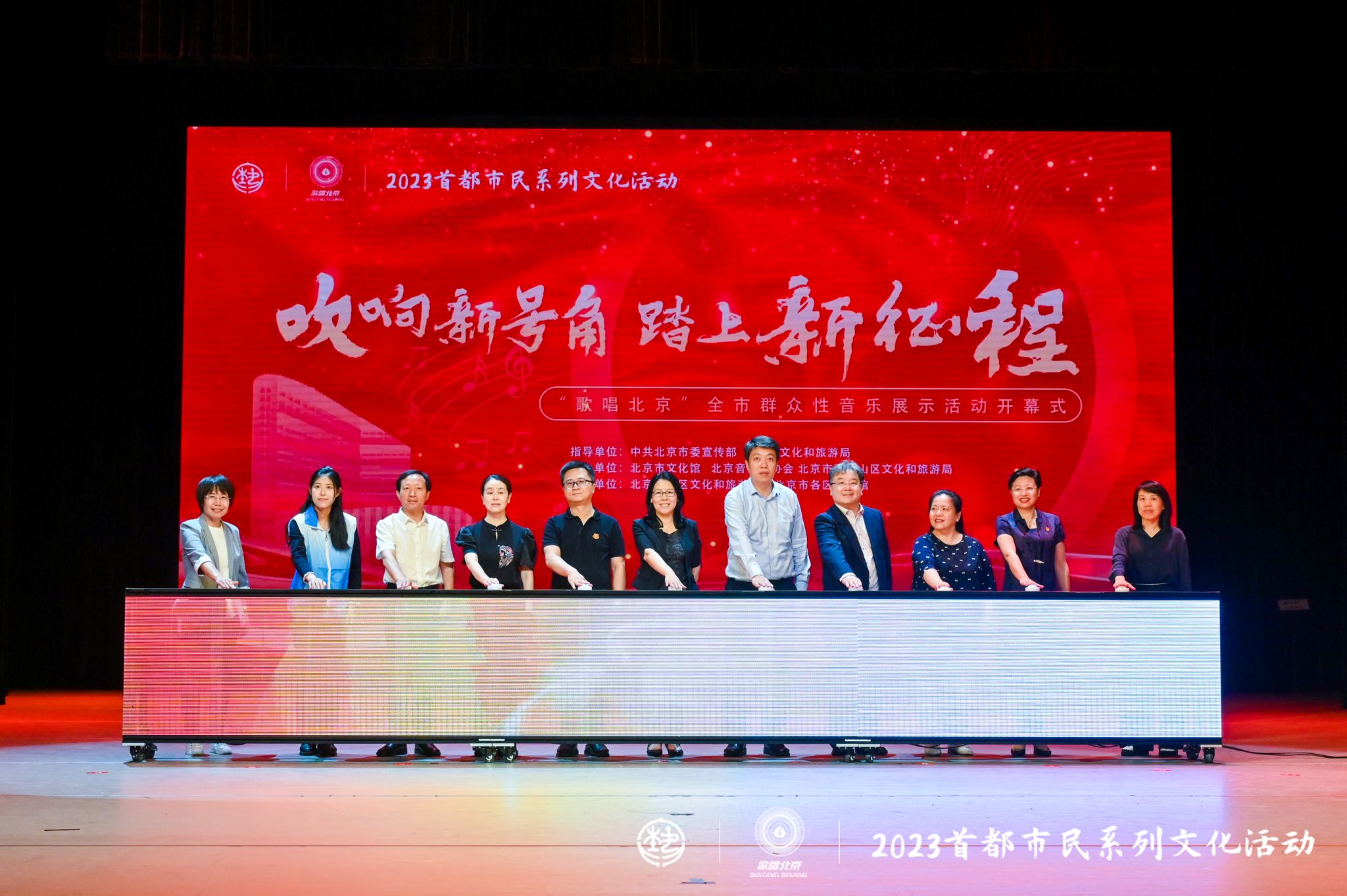 新聞網訊 5月26日上午,以“吹響新號角,踏上新征程”為主題的“歌唱北京”首都全市群眾性音樂展示活動開幕式在石景山區文化中心舉行。全國公共文化發展中心文化館處處長、中國文化館協會秘書長趙保穎,北京市教育委員會體育衛生與藝術教育處副處長徐春生,北京市文化館黨總支書記、館長王維波,中央民族大學音樂學院院長包愛軍以及各區文化館相關領導,各高校代表,專家代表,合唱團、樂團以及市民代表、媒體等近500人參加開幕式。