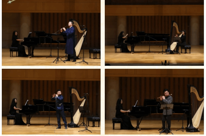 音樂(lè)會(huì)上,演奏家們通過(guò)簫與豎琴、笛與鋼琴、笛與豎琴、豎琴與鋼琴等多種形式的結(jié)合,精彩演繹了《相逢》《頂嘴》《山村迎親人》《秋江夜泊》《嘯月》《格拉納達(dá)小夜曲》等作品。這些曲目涵蓋了傳統(tǒng)曲目與現(xiàn)代創(chuàng)作作品,從中國(guó)作品到西洋作品,為觀眾帶來(lái)了一場(chǎng)跨越時(shí)空的絕美體驗(yàn)。