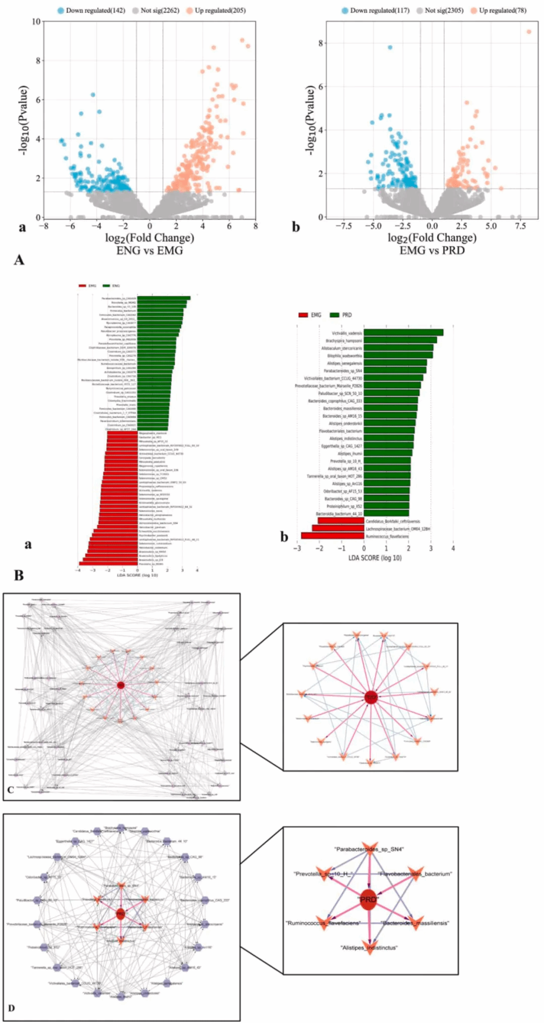 在本次研究中,研究者通過建立大鼠2型糖尿病模型,發現PRD治療后大鼠血糖水平顯著下降,同時有效改善了血脂異常、胰島抵抗和炎癥反應。通過宏基因組分析,研究者發現菩人丹顯著改善了腸道微生物的豐度,改變了多種微生物的含量。進一步分析表明,與PRD治療關系最密切的物種包括P.sp 10 (H)、Pa. sp SN4 等。KEGG分析顯示,PRD組的脂肪代謝、轉運和分解代謝顯著富集,而糖尿病組富集氨基酸代謝。此外,采用基于UHPLC - QTOF/MS的非靶向代謝組學方法,研究者發現PRD降低了包括苯甲酸、膽酸等在內的29種代謝產物的水平。