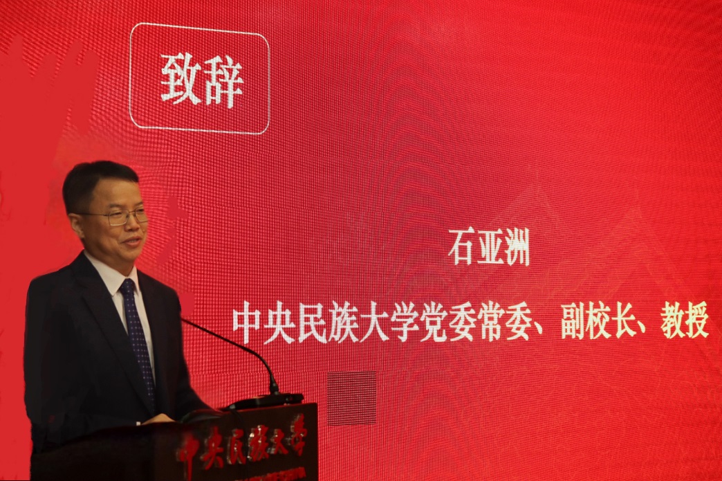 石亞洲在致辭中表示,在建黨百年、建校七十周年之際,舉辦此次國際研討會具有重要意義。他回顧了我校在黨的民族語文工作方面做出的歷史貢獻,肯定了中國少數民族語言研究院、中國少數民族信息結構創新引智基地近年來為推動中國少數民族語言研究國際化做出的成績,同時從以鑄牢中華民族共同體意識為主線增強語言間交流研究、促進語言共性研究、增進國外語言與中國語言的比較研究方面提出期許。