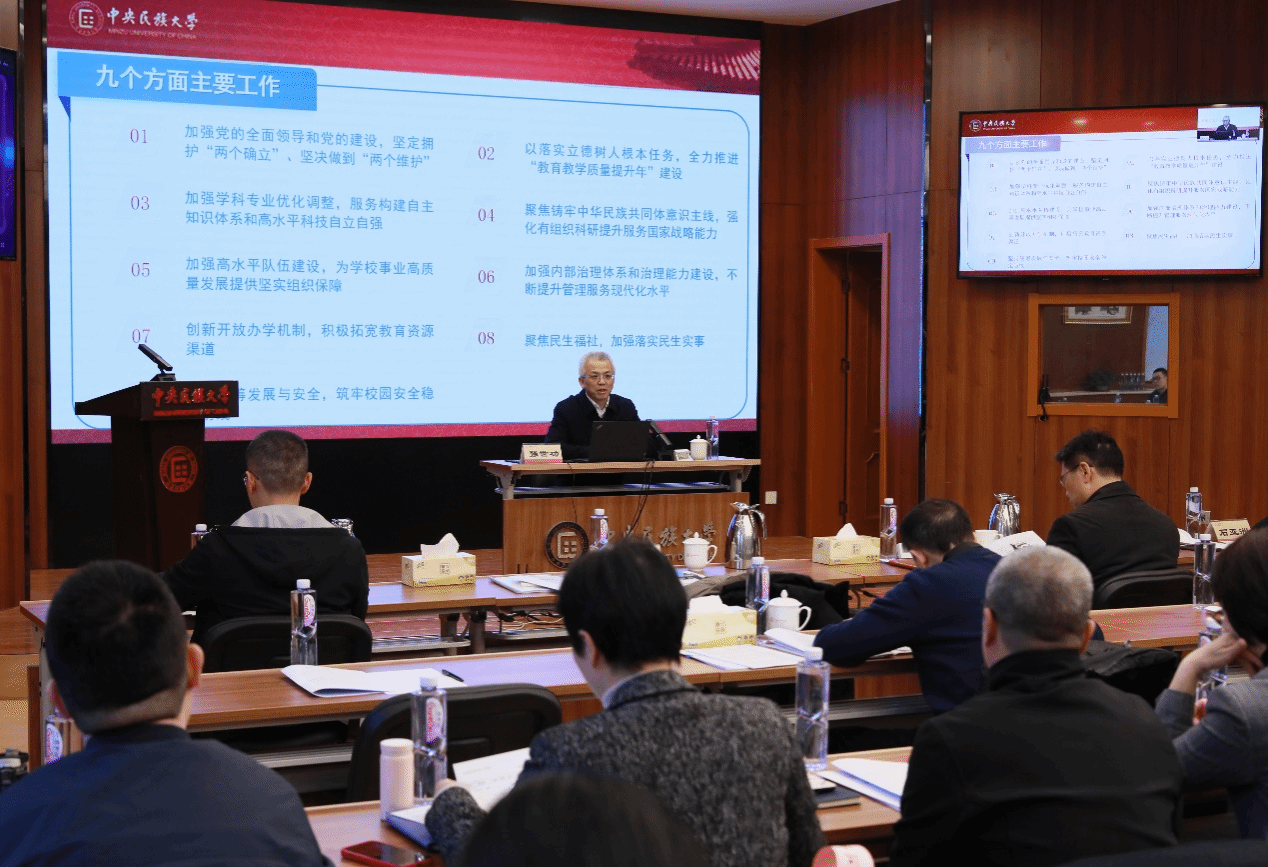 查顯友指出,全校上下要深刻把握新形勢新任務,認清當前歷史方位和改革發展任務,進一步增強建設特色鮮明世界一流大學的使命感、責任感、緊迫感。他強調,要服務好國家重大戰略需求,在中華民族共同體建設和理論支撐方面做出獨樹一幟的貢獻;要聚焦培養拔尖創新人才,不斷提升服務國家戰略和科技創新的支撐力和貢獻力;要著力建構中華民族共同體理論體系,講好中華民族共同體故事,為高質量服務黨的民族工作作出積極貢獻;要把握人工智能技術深刻影響高等教育領域的歷史大勢,積極賦能民族領域自主話語體系的構建;要開好第九次黨代會和制定好學校“十五五”發展規劃,謀劃好未來發展藍圖,以全面深化改革推動學校在建設教育強國中作出更大貢獻。