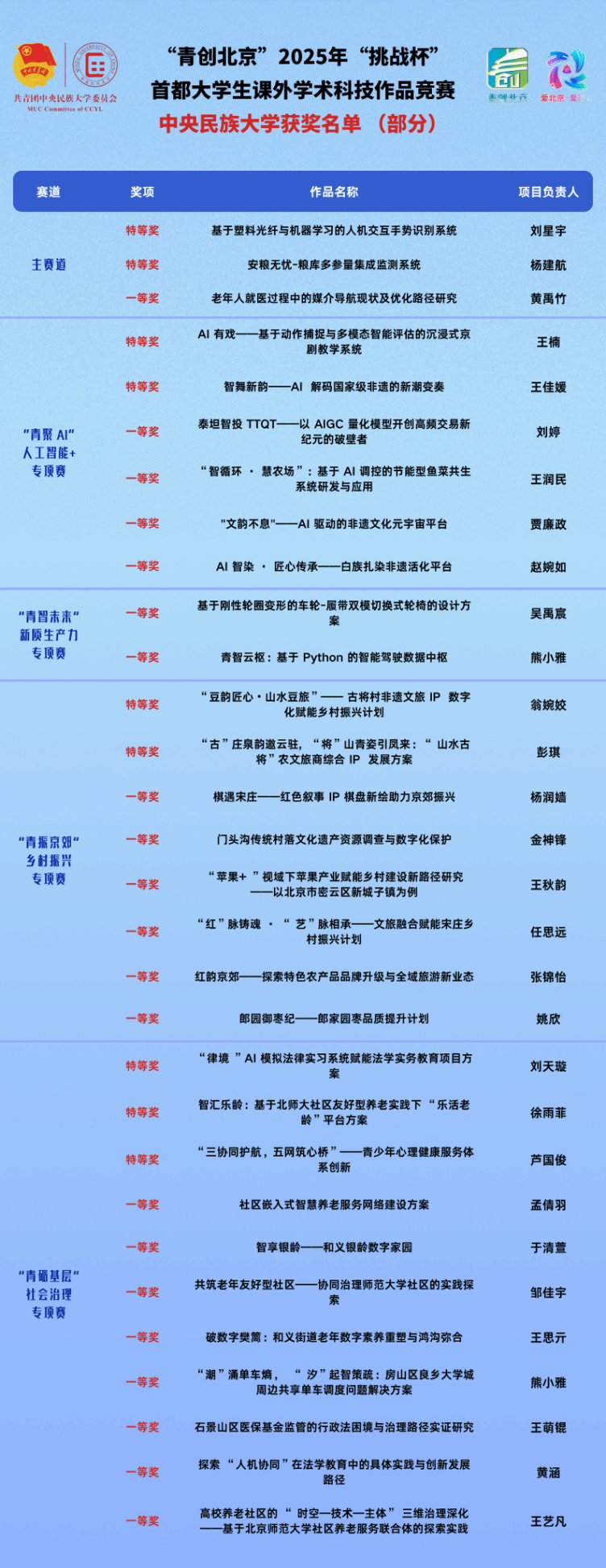新聞網訊 5月29日,2025年“挑戰杯”首都大學生課外學術科技作品競賽在北京信息科技大學落下帷幕。我校參賽團隊共獲得特等獎9項、一等獎21項、二等獎50項、三等獎64項,主體賽獲獎率100%,再捧首都“優勝杯”!
