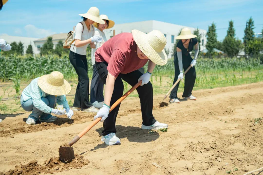 同學們懷著對農耕文化的好奇與向往,投入了獨具特色的“耕讀課堂”。在田間地頭,大家手持農具,在專業人員的指導下學習翻地技巧,掌握起壟要領,認真聆聽施肥方法和播種要點。通過親身體驗農事勞作,深刻體會農耕的艱辛與糧食的來之不易。在農具體驗環節,從玉米脫粒、石磨碾粉,到現代膨化技術展示,同學們既驚嘆于傳統農具的巧思,又感受到農耕文明的智慧傳承;講解老師帶領大家系統認識各類作物,將理論知識與田間實踐生動結合,通過對比傳統與現代加工方式的差異,讓同學們直觀感受到農業技術的進步,完成了一場跨越古今的農業文化探索之旅。