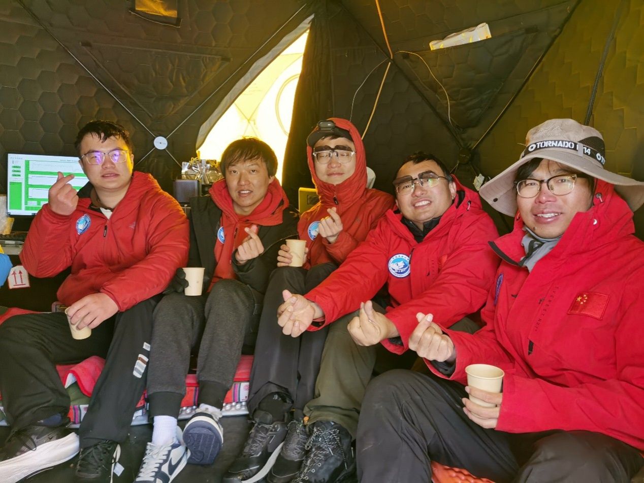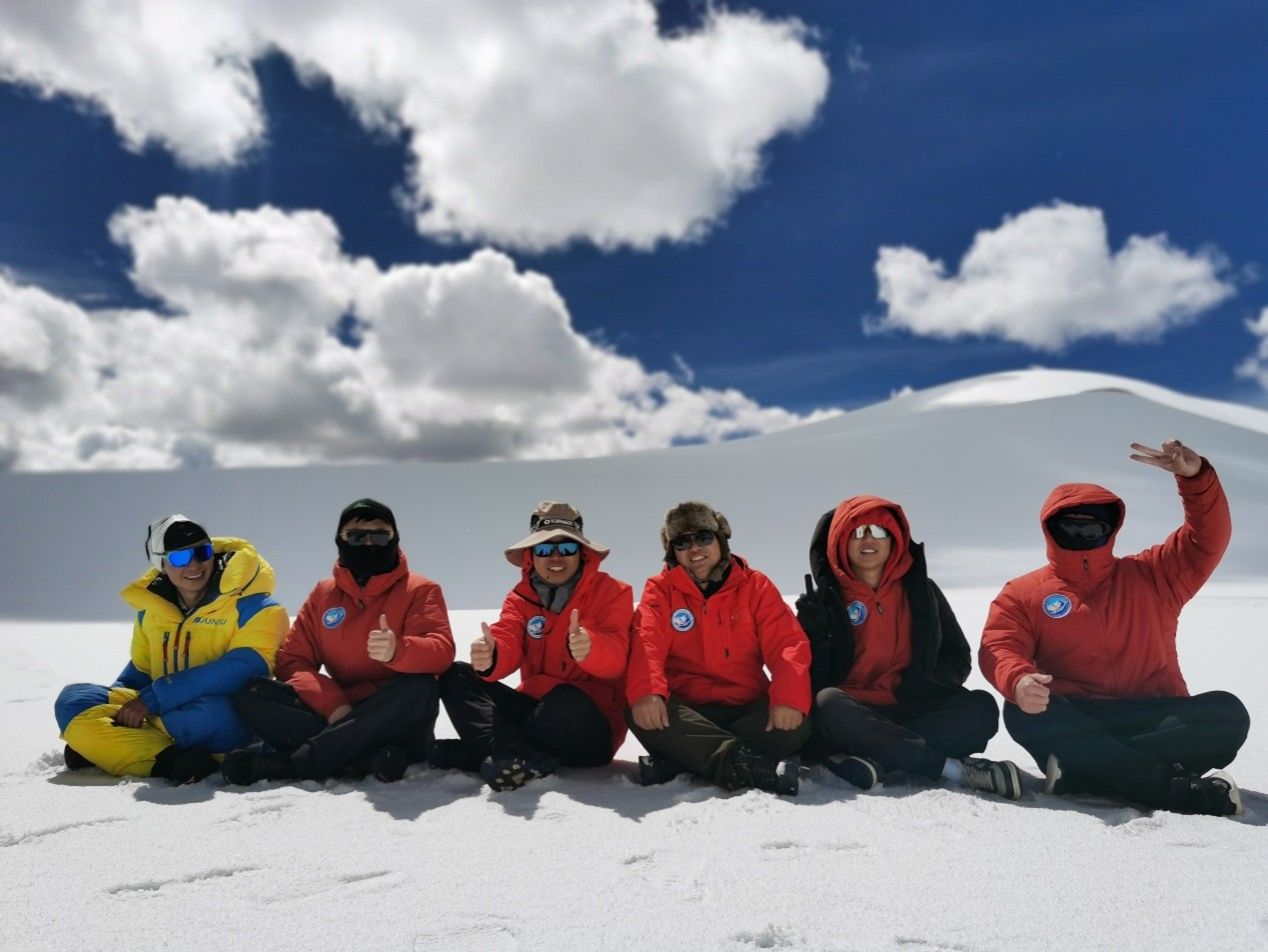 海拔5800米冰川帳篷里與學生合影(右2為林偉立老師)