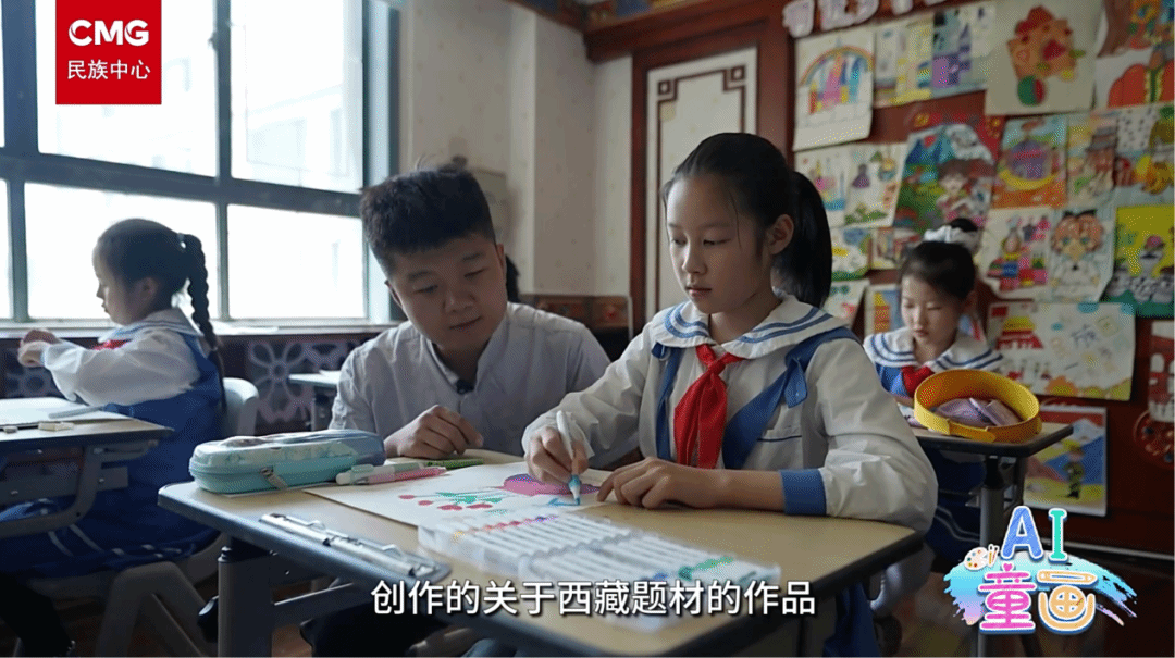 “孩子們的畫筆里,藏著最純粹的情感:有對雪山草原的眷戀,有對家鄉變遷的欣喜,更有對祖國大家庭的熱愛。他們用線條勾勒西藏60年的發展,用色彩描繪對未來的向往。這堂課不僅是藝術的傳遞,更是情感的共鳴。看著孩子們眼中的光與畫中的景,我真切感受到,家國情懷早已在他們心中扎根。這樣的經歷,讓我更明白藝術教育的意義——讓愛與希望,隨畫筆一同生長。”