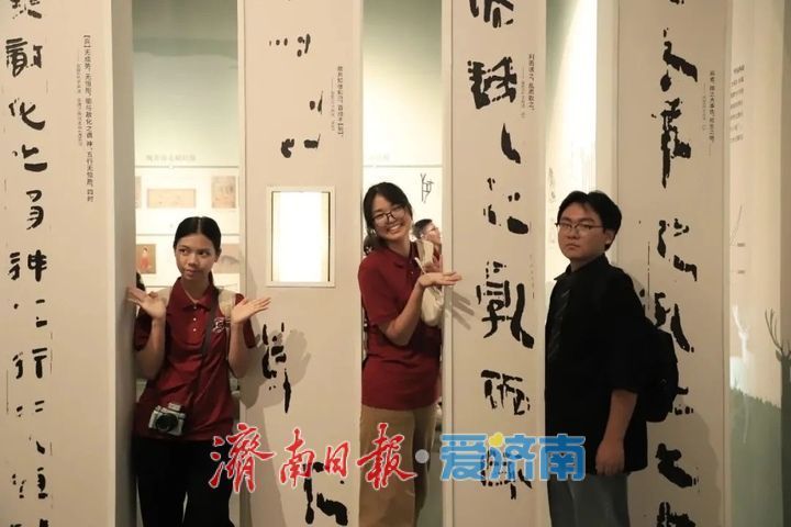 7月24日下午,實踐團步入山東博物館,在這座匯聚海岱文明的殿堂里,開啟了一場穿越時空的深度對話。隊員們徜徉于“海岱日新——山東歷史文化陳列”的恢宏序列,從史前龍山黑陶的溫潤光澤,到商周青銅卣上獰厲的饕餮紋飾;從魯國大玉璧的雍容氣度,到漢代畫像石上躍動的樂舞百戲;從瑯琊刻石斑駁的秦篆遺韻,到孔府珍藏帛書上清晰的圣賢墨跡——一件件國之瑰寶,如星辰般串聯起齊魯大地五千年文明的璀璨星河。駐足孔子圣跡圖前,儒家“和而不同”“天下大同”的思想光芒,跨越千年仍熠熠生輝;凝視反映民族交融的北朝造像與絲路遺珍,多元文化在山東沃土上和諧共生、相互滋養的歷史圖景生動呈現。這些無聲的史證,不僅讓成員們深刻觸摸到中華文明源遠流長、博大精深的根脈,更從地域文明與中華文明水乳交融的宏大敘事中,直觀體悟了中華民族共同體形成發展的內在邏輯與磅礴偉力。