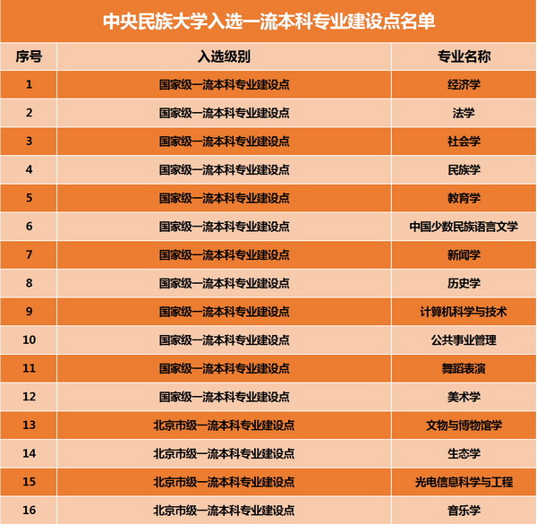 新聞網訊 近日,根據《教育部辦公廳關于公布2019年度國家級和省一級一流本科專業建設點名單的通知》(教高廳函〔2019〕46號),我校民族學、社會學、中國少數民族語言文學、歷史學、經濟學、法學、教育學、新聞學、計算機科學與技術、公共事業管理、舞蹈表演、美術學12個專業獲批首批國家級一流本科專業建設點,文物與博物館學、生態學、光電信息科學與工程、音樂學4個專業獲批首批北京市級一流本科專業建設點。