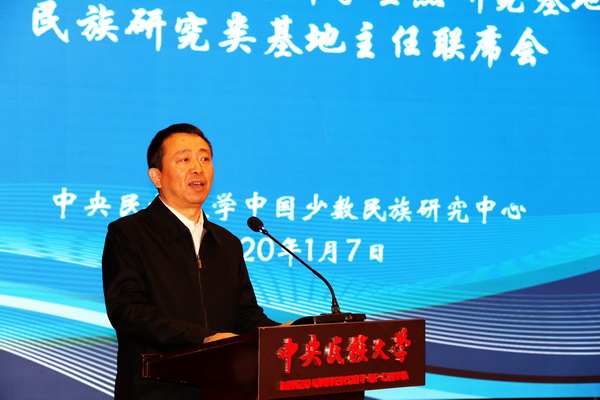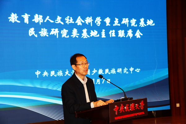田聯剛代表國家民委教育科技司向蒞臨本次聯席會的人員表示衷心感謝。他指出,中央民族大學中國少數民族研究中心是國家民委、教育部共建的人文社會科學重點研究基地,這是教育部最早在全國設立的基地之一,也是國家民委系統唯一一家教育部人文社會科學重點研究基地。該中心自建立以來,不斷取得新的成績。他強調為了深入貫徹落實十九屆四中全會關于做好新時代民族工作的要求,深入貫徹落實習近平總書記提出的鑄牢中華民族共同體意識的思想,教育部社科司和國家民委教科司將進一步形成共識,加大力度支持民族研究類基地和研究機構的發展。田聯剛希望由中央民族大學牽頭舉辦的民族研究類基地主任聯席會能夠堅持下去,定期舉辦,形成良好機制,建設民族研究的學術共同體,開創民族研究的新局面。