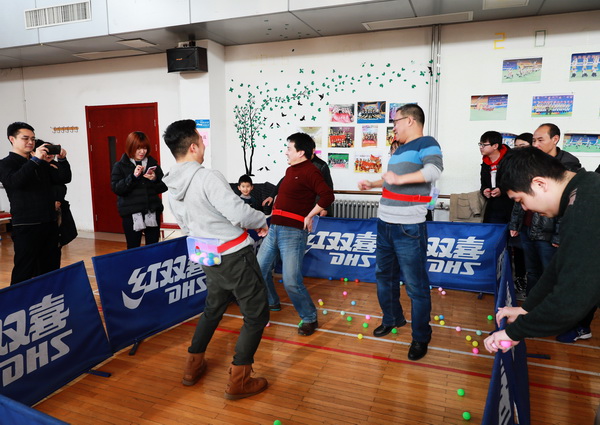 聯(lián)歡活動在“鼓動人心”和“月球漫步”兩個集體趣味項目中拉開帷幕,20個代表隊充分發(fā)揮集體智慧、發(fā)揚團結(jié)協(xié)作的精神,力爭取得優(yōu)異成績。最終,國際合作處代表隊和研究生院代表隊分獲兩個集體項目一等獎。活動還設有“手忙腳亂”、“抖球大戰(zhàn)”、“光盤拔河”三項個人趣味比賽。(攝影:馬丹妮)