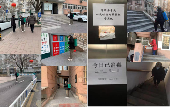 “分包分管專人負責”。非常時期,在減少相互交叉感染傳播可能的同時,又要對小區居民情況特別是外訪人員情況進行摸排,可不是一件簡單的事情。“現在的當務之急,就是要實現信息公開暢通、防控要求暢通、監督渠道暢通,切實把樓道的疫情防控工作落實到位。”于是,他們對社區內24棟樓宇每個樓宇安排一位工作人員或志愿者專人負責,采用微信、電話、隔門問答、調查問卷等方式完成每棟樓宇居民尤其對武漢返京居民地毯式排查,迅速精準了解每戶居民健康狀況、從何地返京、離京抵京時間等重要信息,建立疫情防控期間居民基礎信息臺賬,對重點人員追蹤記錄,不斷完善和精確信息數據。各個樓宇的微信群更是狠刷了一波“存在感”。哪家未外出、哪家未返京,樓組長們一清二楚。